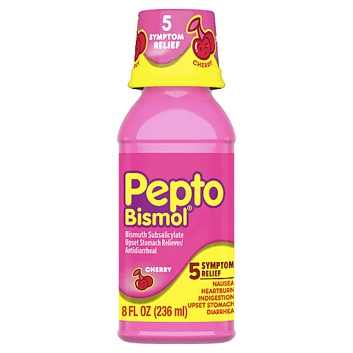 When you need upset stomach relief, Pepto Bismol over-the-counter medicine coats, calms and soothes your stomach, providing fast digestive relief from nausea, heartburn, indigestion, upset stomach, and diarrhea. Pepto Bismol is formulated to coat your digestive tract to calm and soothe and provide fast and effective 5 symptom relief. Take Pepto Bismol at the first sign of digestive issues so you can get rapid relief. Pepto Bismol liquid also provides relief from multiple stomach upsets so you can get back on track fast! From the maker of the #1 Pharmacist Recommended Upset Stomach Brand - Pepto Bismol.